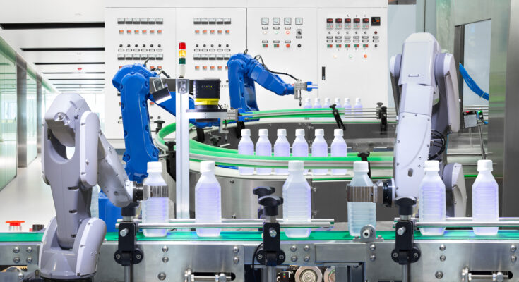 A related application is blow molding. This process is used to create plastic bottles — amongst other things — and robots are a good option for handling those bottles after the blow molding has been completed.