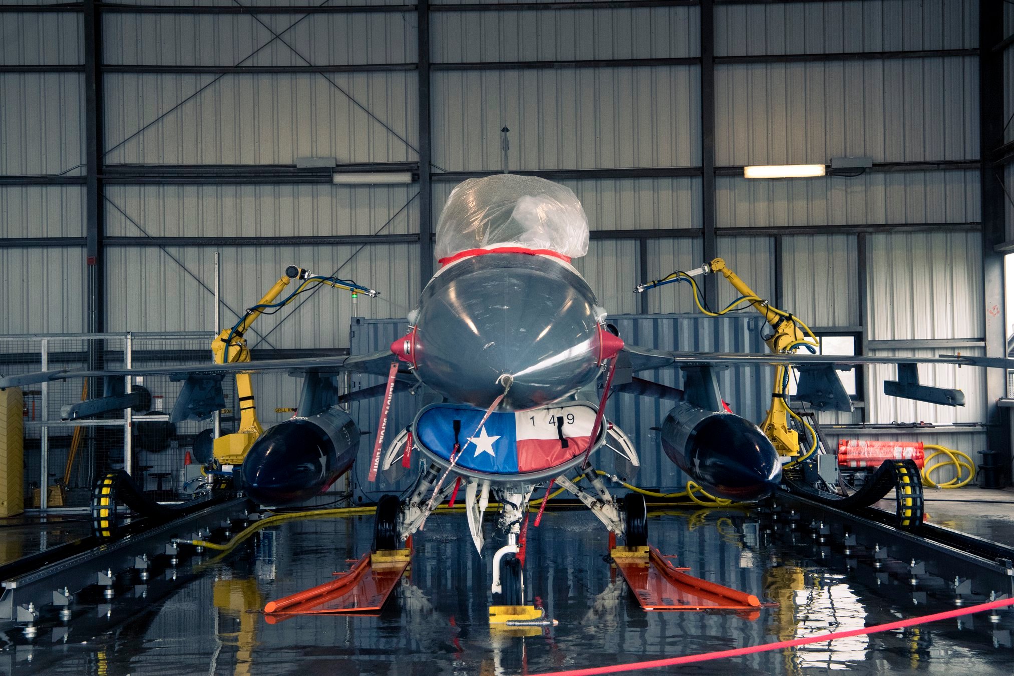 该项目的目标是减少劳动量,并提高洗涤F-16飞机的安全性。为此,他们设计了用于飞机的第一个机器人“驱动器”洗涤系统,利用多种机器人组件。