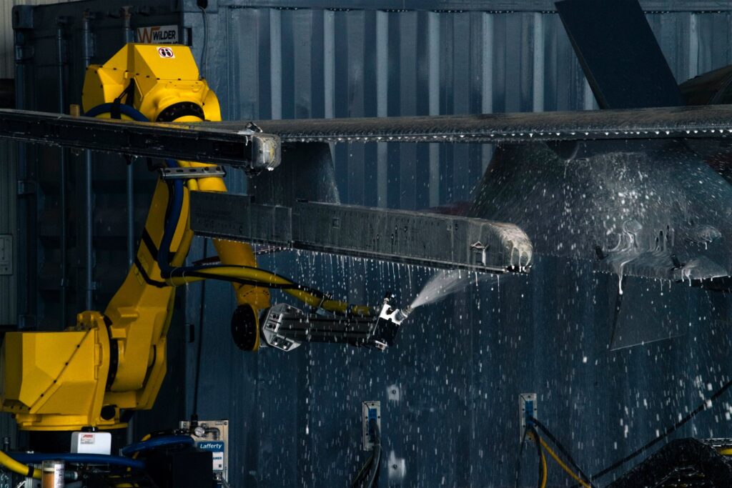 Washing is a critical task in airplane manufacturing as it helps to reduce corrosion, improving the life of the plane and its safety.