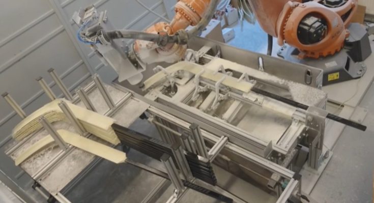 Sunrob机器人使用手持式激光扫描仪每个棍子的3 d模型,然后他们复制完全机器人铣削。