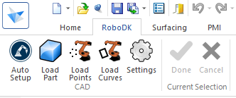 该插件充当从实心边缘到Robodk的单向桥梁。使用新菜单,您可以将零件,路径,曲线和点直接发送到Robodk。它们将以适合机器人编程的格式自动加载到您的机器人程序中。
