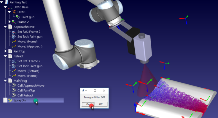 作为测试,我刚刚运行了RoboDK的新安装,并加载了一个UR机器人。这只花了我几分钟。然后我给机器人编程。为了使我的时间估计更现实,我读了得到开始教程来提取我需要的信息来制作一个非常简单的拾取放置程序。然后我将程序导出到一个UR Script文件,该文件可以加载到机器人中。整个过程只花了我15分钟。